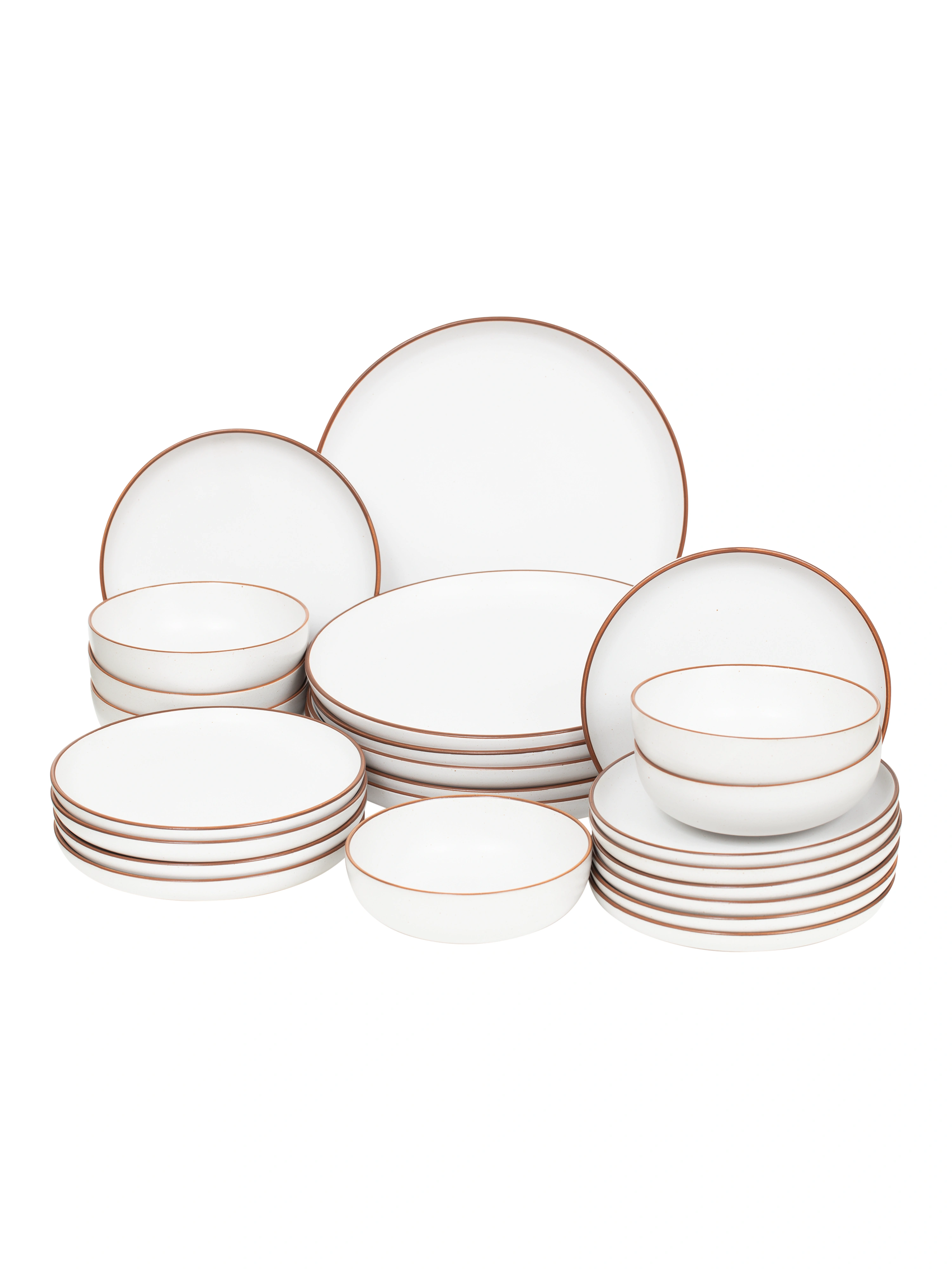 Den klassiska designen gör servisen enkel att matcha med olika dukar, glas och bestick. Ett praktiskt och vackert val som håller över tid. Tillverkade i 100% stengods.