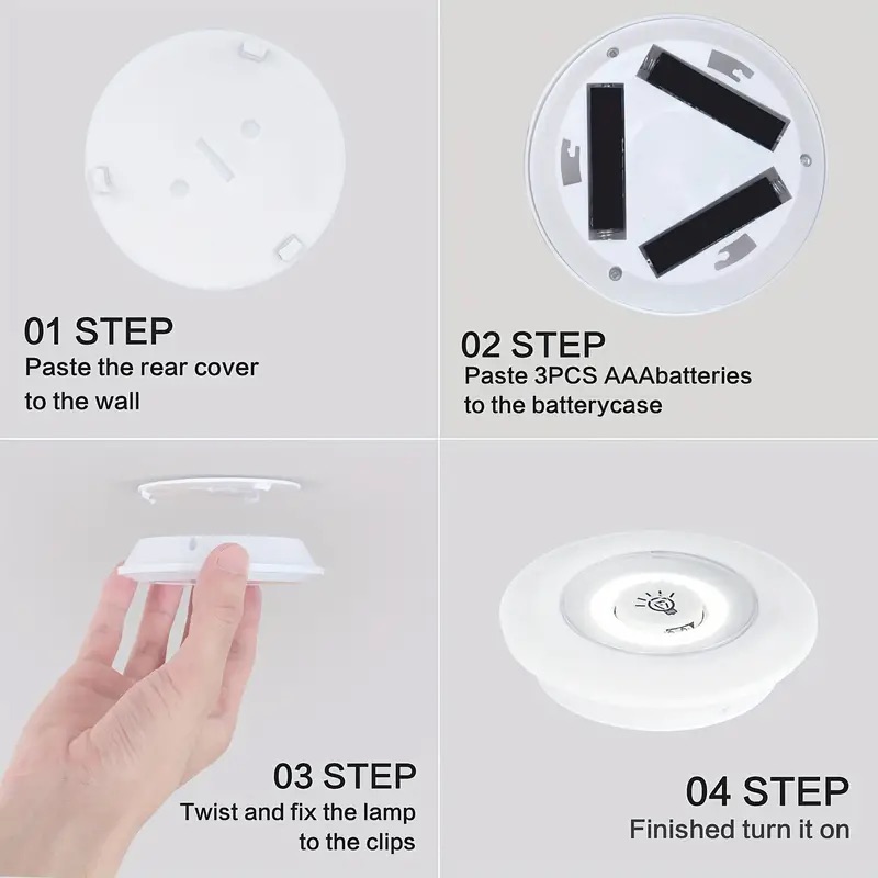 Monteras snabbt och enkelt med dubbelhäftande tejp, ingen borrning behövs. Lamporna är flyttbara och kan placeras precis där du vill ha extra ljus. Tack vare energisnål LED-teknik får du ett klart och jämnt sken utan att dra mycket ström. Perfekt kombination av funktion, bekvämlighet och stil.