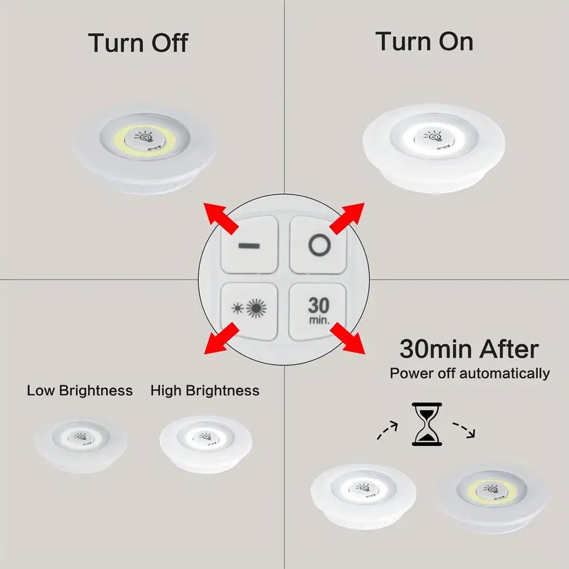 Uppgradera hemmets belysning med smarta LED-lampor som ger effektivt och behagligt ljus i skåp, garderober, kök eller andra mörka utrymmen. Med den medföljande fjärrkontrollen styr du enkelt ljusstyrkan (50 % eller 100 %) och timerfunktionen på 30 minuter.