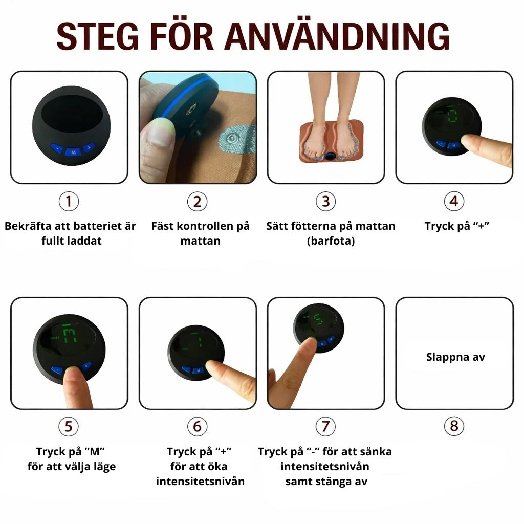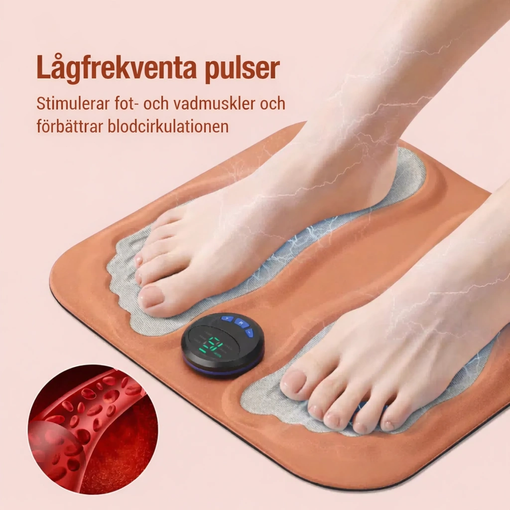 - Stimulerar fotens akupunkturpunkter med lågfrekventa pulser
