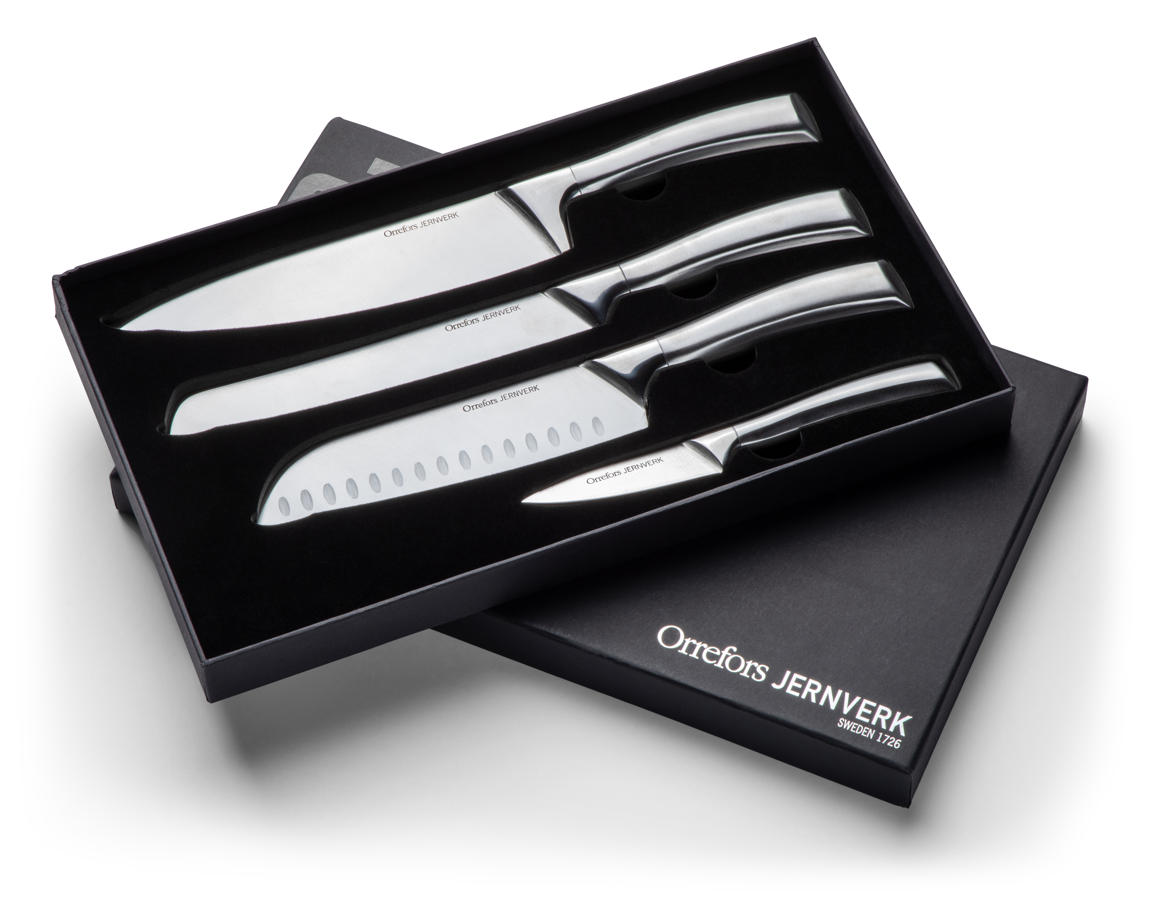 Ge köket ett lyft med detta exklusiva knivset från Orrefors Jernverk. Setet innehåller fyra högkvalitativa knivar – kockkniv, filékniv, santokukniv och tomatkniv, som tillsammans täcker alla dina behov i köket.