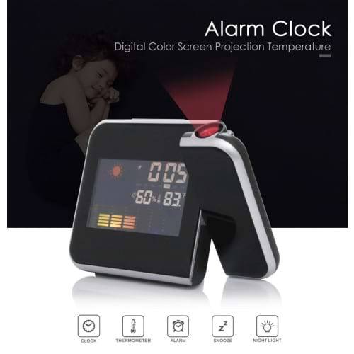 Med dagens deal får du en alarmklocka med projektor och tydlig LCD-skärm som visar tid, temperatur, luftfuktighet och väder. Projicerar den exakta tiden och projiceringsvinkeln är 180 graders justerbar. Väckarklockan stöder snoozeläge och fungera även som en nattlampa. Drivs av 2 st AAA-batterier (medföljer ej) eller medföljande elkabel.