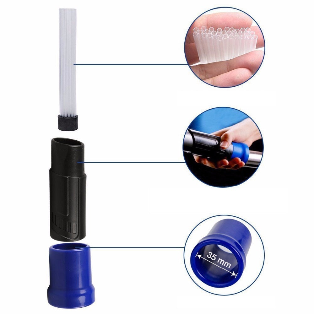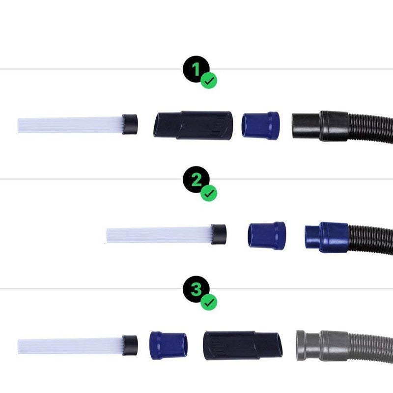 Munstycket är enkelt att installera. Du fäster den direkt på dammsugarslangen och kan börja använda den direkt. Den är kompatibel med de flesta dammsugare med slangdiameter på 37 mm och levereras även med en universell adapter för mindre slangar.