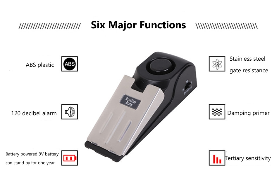Den kilformade designen gör att dörren blockeras samtidigt som larmet aktiveras. Perfekt för hemmet, hotellrum, kontor eller resor. Det höga ljudet inte bara väcker dig direkt, det skrämmer effektivt iväg inkräktaren innan de hunnit in.