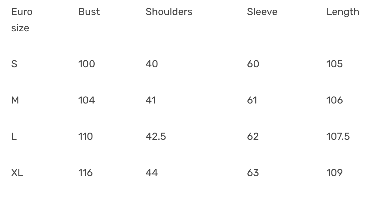 - Europiska storlekar: S, M, L, XL