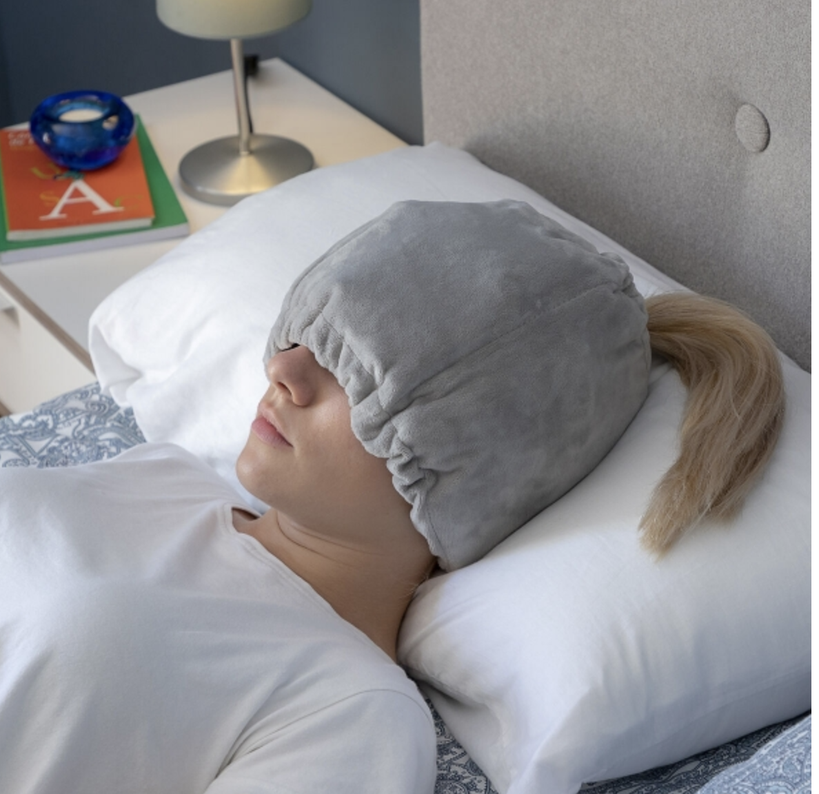 - En ergonomisk gelmössa för att lindra migrän, spänningar och huvudvärk