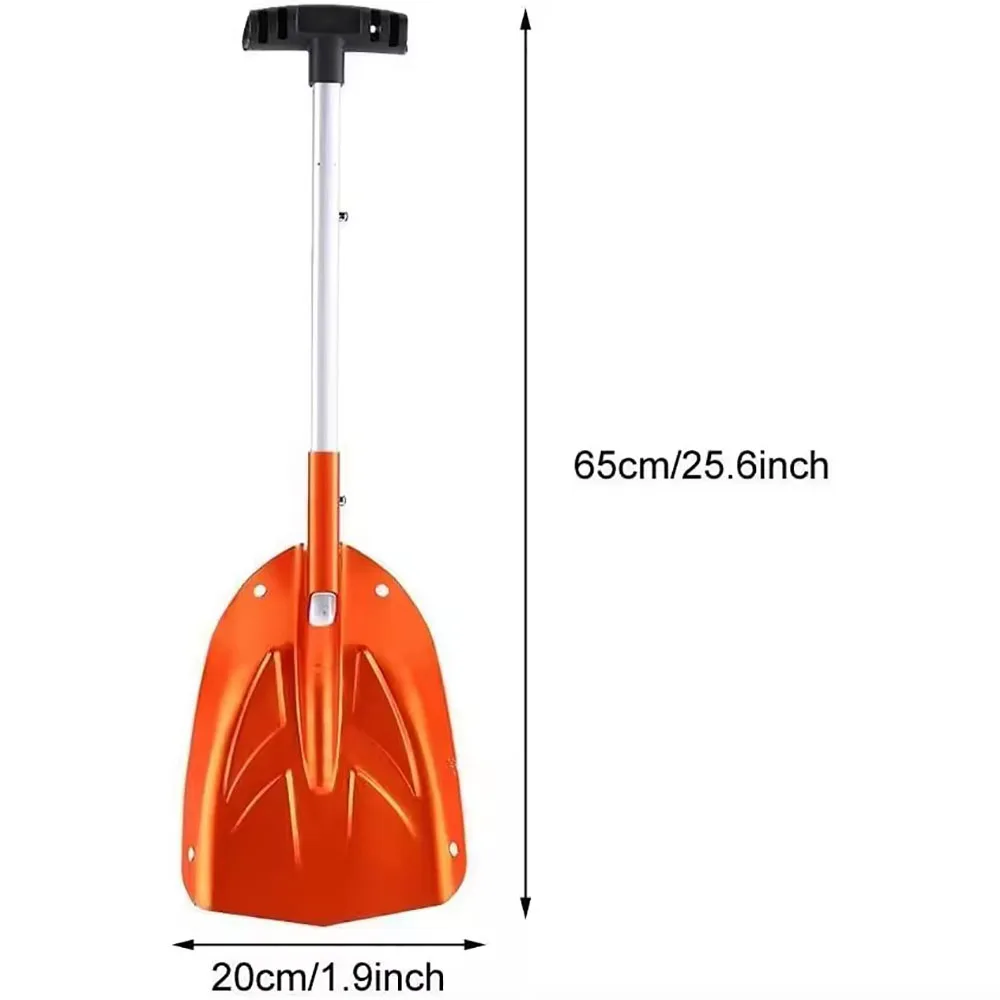 Den lätta men slitstarka konstruktionen i aluminiumlegering gör skyffeln enkel att använda utan att kompromissa med styrka. Det infällbara handtaget ger ett bra grepp vid användning och gör samtidigt skyffeln kompakt och enkel att förvara i bagageutrymmet. Den klara orange färgen gör att du snabbt hittar den, även i djup snö eller dåliga ljusförhållanden.