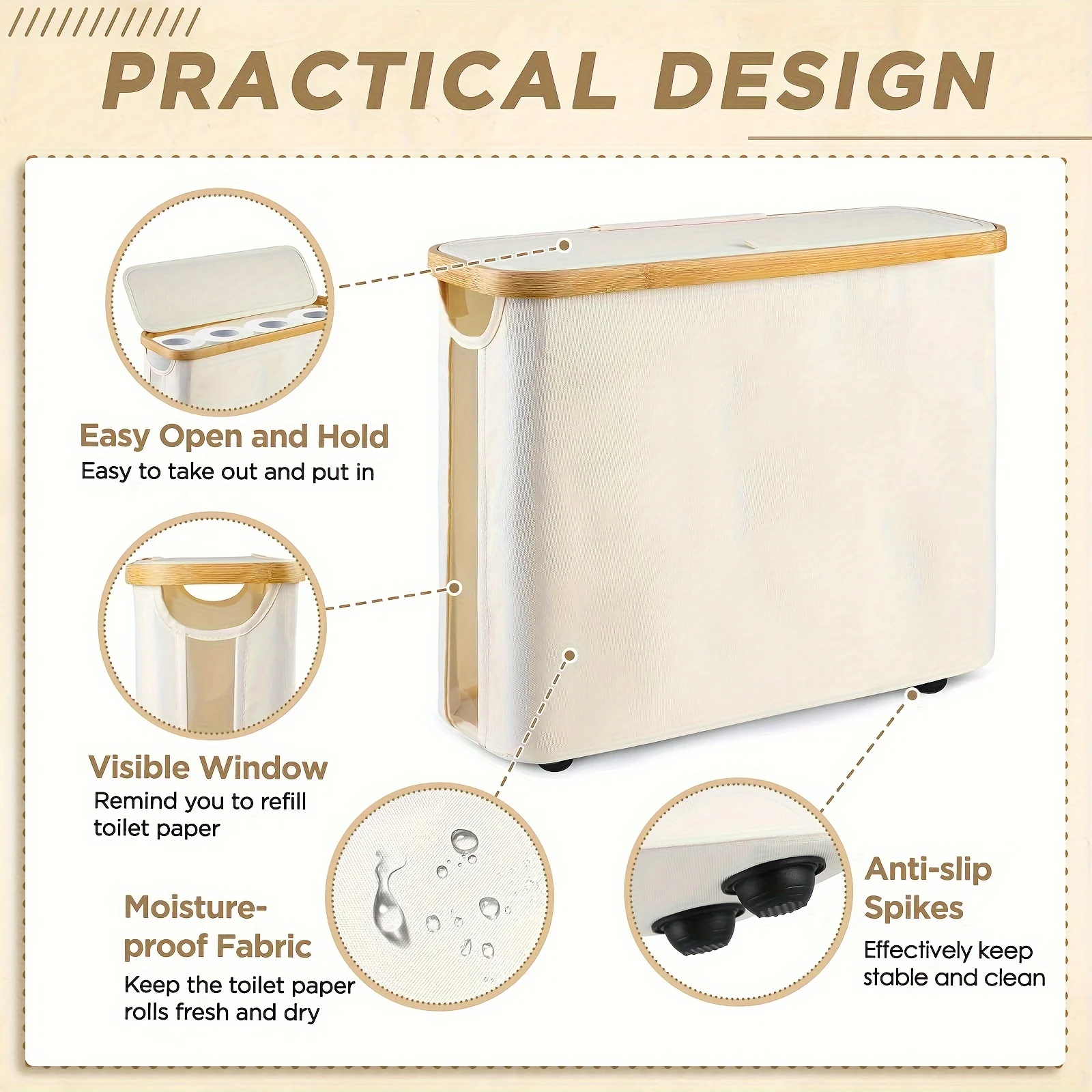 Slipp överfulla badrumsskåp och håll ordning på extra toalettpapper på ett snyggt och praktiskt sätt. Denna hopfällbara förvaringskorg rymmer upp till 12 toalettpappersrullar och har ett stilrent lock som skyddar innehållet från damm och fukt.