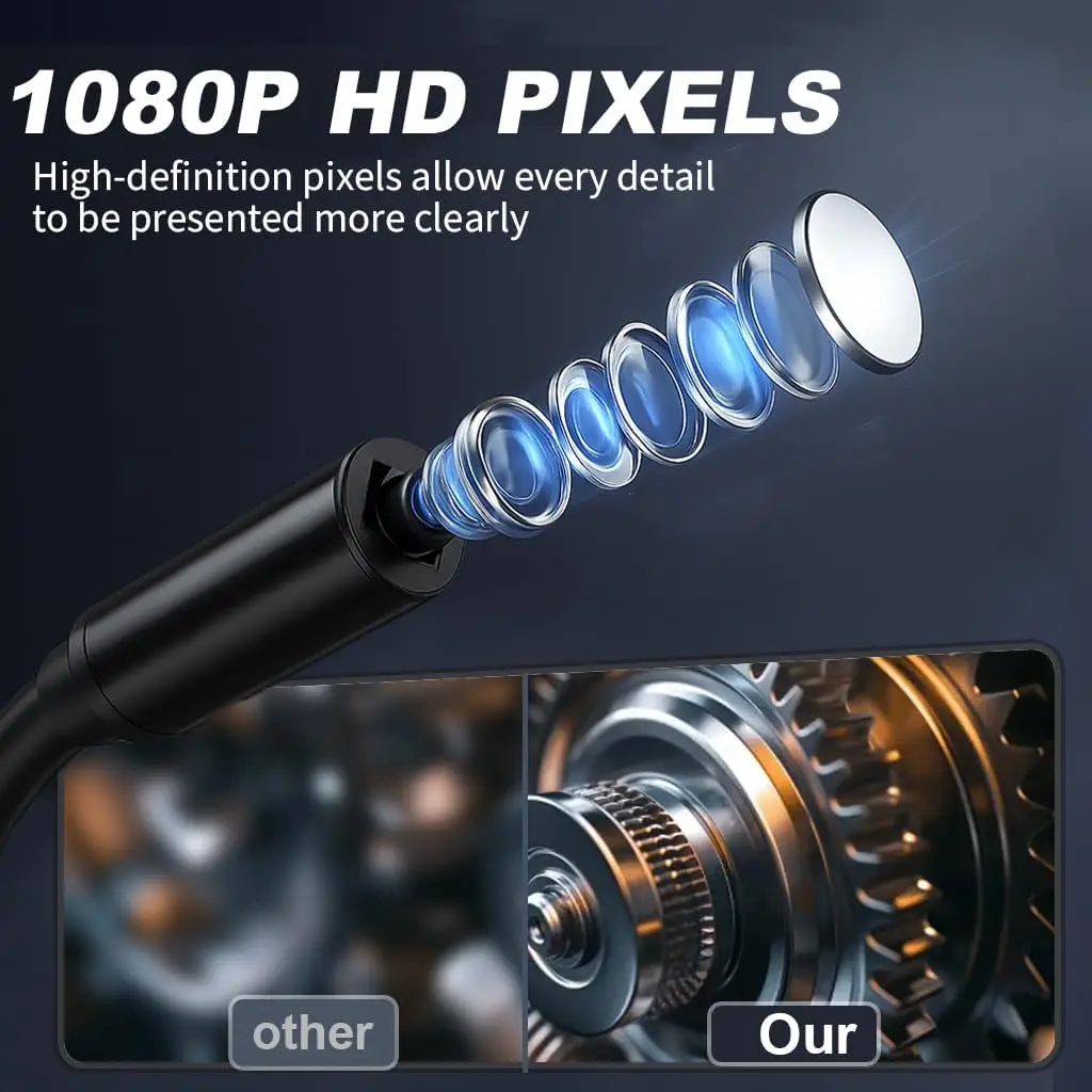 Glöm inspektionskameror som kräver att du laddar ner appar och krånglar med mobiltelefonens inställningar. Den har en inbyggd och handhållen färgskärm som ger dig en kristallklar bild i HD-kvalitet. Bara tryck på start och börja undersöka.