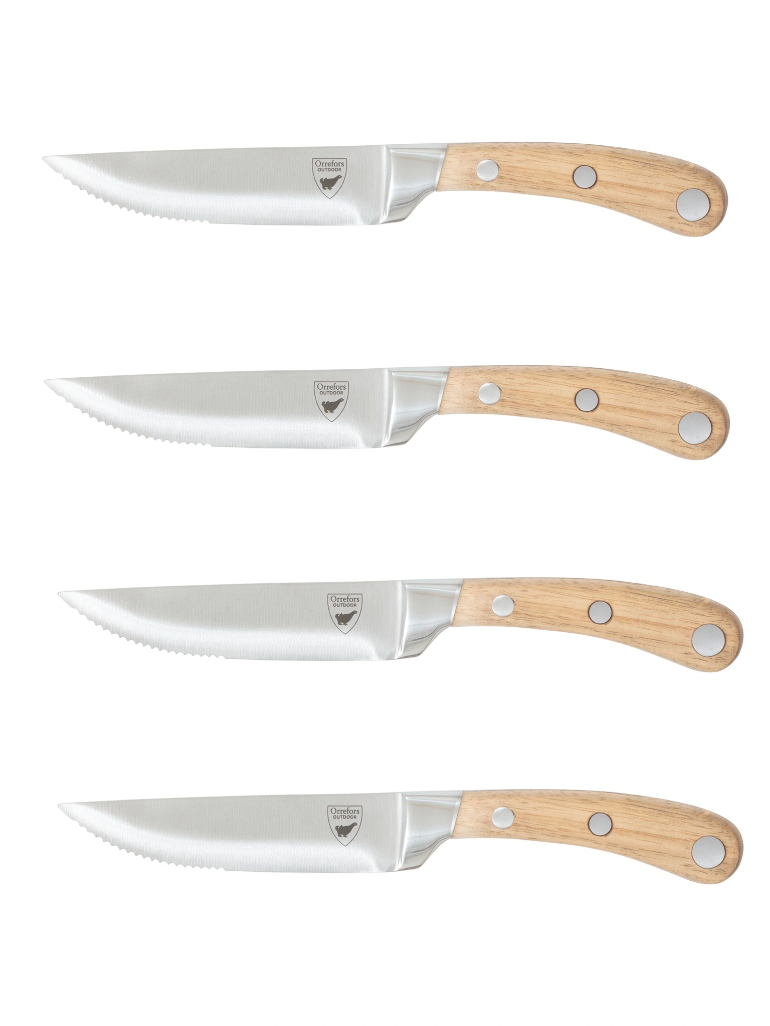 4 st köttknivar från Orrefors tillverkade i rostfritt stål. Skär enkelt genom både mört och fast kött. Ord. pris 799 kr, ditt pris 399 kr