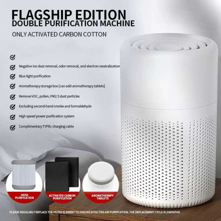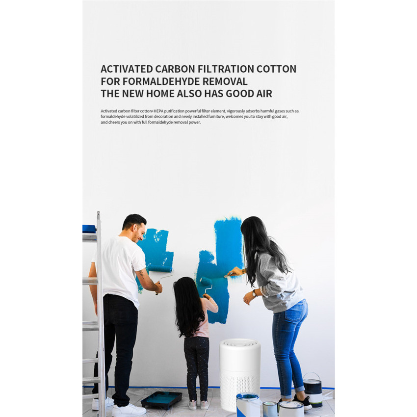 - Paketet innehåller: 1x luftrenare, 1x filter, 1x aktivt-kol filter, 1x manual på engelska