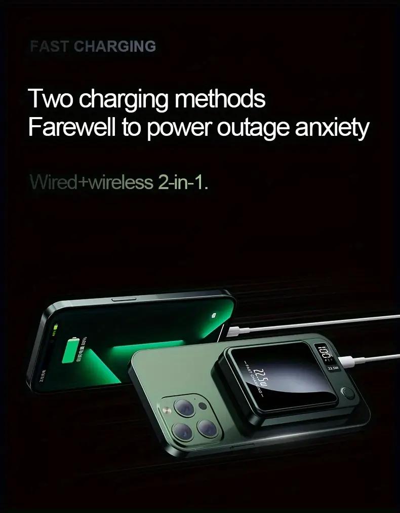 Håll dina enheter laddade oavsett var du är! Denna kraftfulla magnetiska powerbank fäster enkelt på baksidan av din iPhone 12–16 tack vare den inbyggda MagSafe-kompatibla magneten. Klicka på plats och laddningen startar direkt.