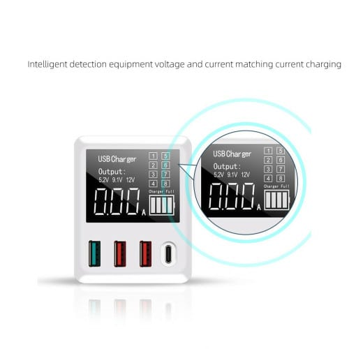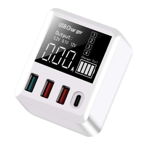 Med dagens deal får du en multifunktionsladdare med digital LED-display. Väggladdare med Quick Charge 3.0 snabbladdningsteknik - 50% fullt på en halvtimme. Ladda upp till 4 enheter samtidigt. Med plats för 1 st USB-C och 3 st USB-A.