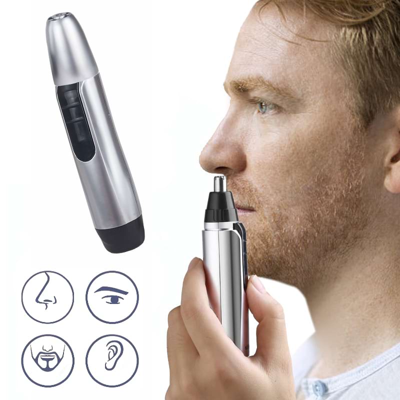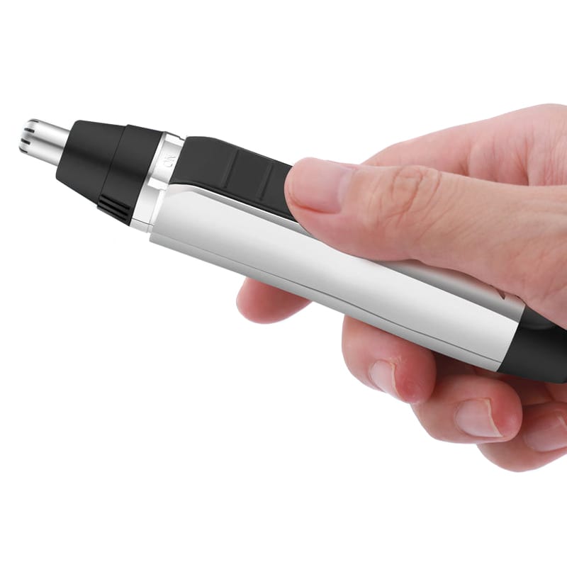 Med dagens deal får du en batteridriven och lättanvänd liten trimmer för näshår, öronhår, ögonbryn och ansiktshår. Trimmern har blad i rostfritt stål som med hög hastighet enkelt och smärtfritt trimmar ner oönskat hår. Den drivs av 1 AA-batteri som håller i ca: 90 minuter.