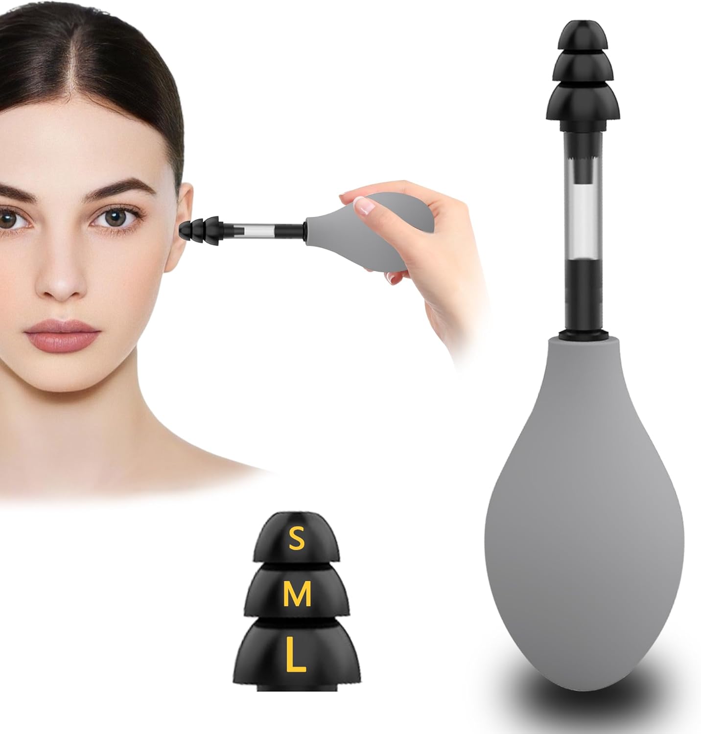 Upplev hur enkel och effektiv avslappning kan vara med ett öronmassageverktyg. Designat för att lindra tryck, spänningar och stress på bara några sekunder. Med tre mjuka silikonpluggar i olika storlekar får du alltid en behaglig och personlig passform, oavsett situation.