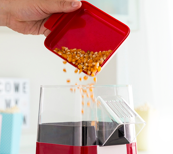 Med dagens deal får du en popcornmaskin som värmer och poppar popcorn tack vare varmluft. Du får snabbt och enkelt fettfria popcorn. Fyll majs från toppen, starta, låt den varma luften göra sitt jobb och se färdiga popcorn komma rullande i din skål efter bara några få minuter!