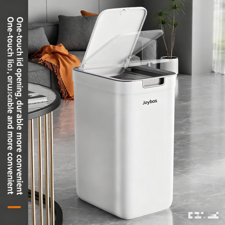 Med ett lätt tryck öppnas locket automatiskt, inga tunga lyft och inget onödigt böjande. Den rymliga kapaciteten på 9 liter gör att du inte behöver tömma den lika ofta, och den stilrena designen i vitt med grå detalj passar fint in i de flesta hem. Perfekt för dig som uppskattar ordning, hygien och smarta lösningar som förenklar vardagen.