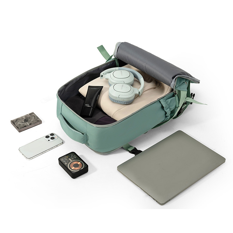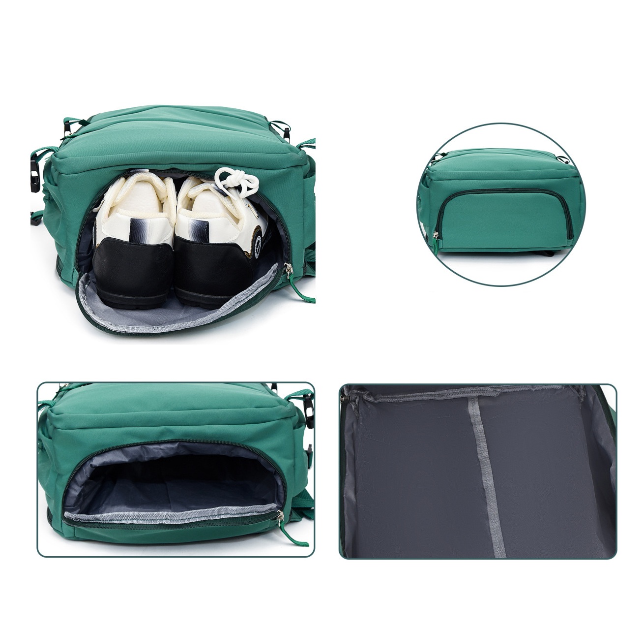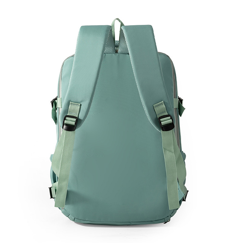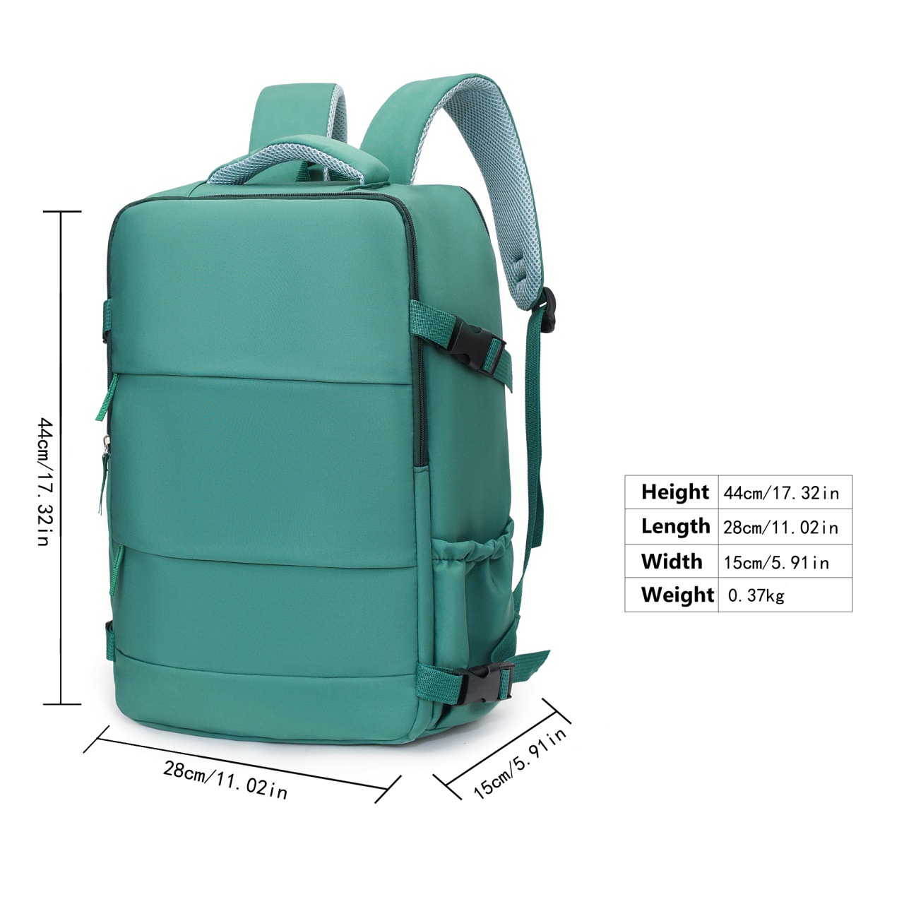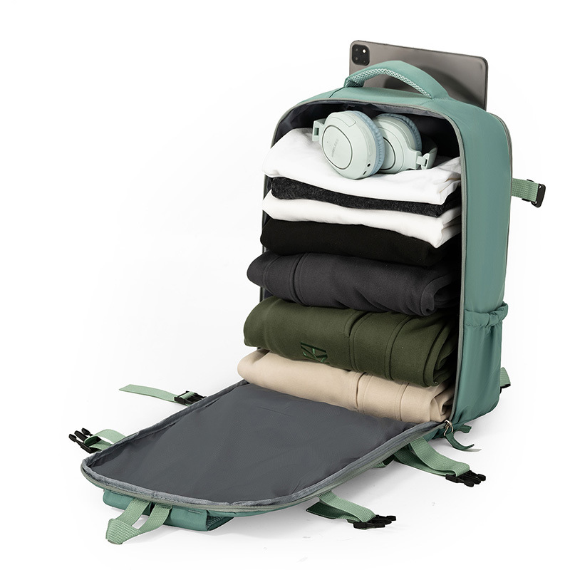 Du får två framfickor med dragkedja, sidofickor för vattenflaskor, ett särskilt skofack samt ett dedikerat fack för surfplatta – perfekt för resor eller pendling. Kompressionsremmarna på sidan gör det enkelt att anpassa packvolymen, och de andningsbara vadderade axelremmarna ger optimal komfort hela dagen. Behöver du bära den i handen? Inga problem – det robusta bärhandtaget gör den lika flexibel som den är stilren.