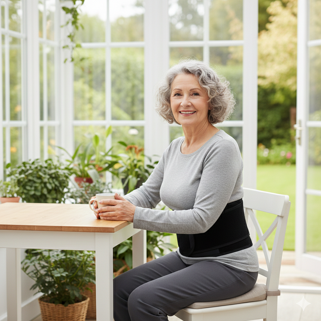 - Förbättrar hållningen genom att ge stabilitet längs ryggraden
