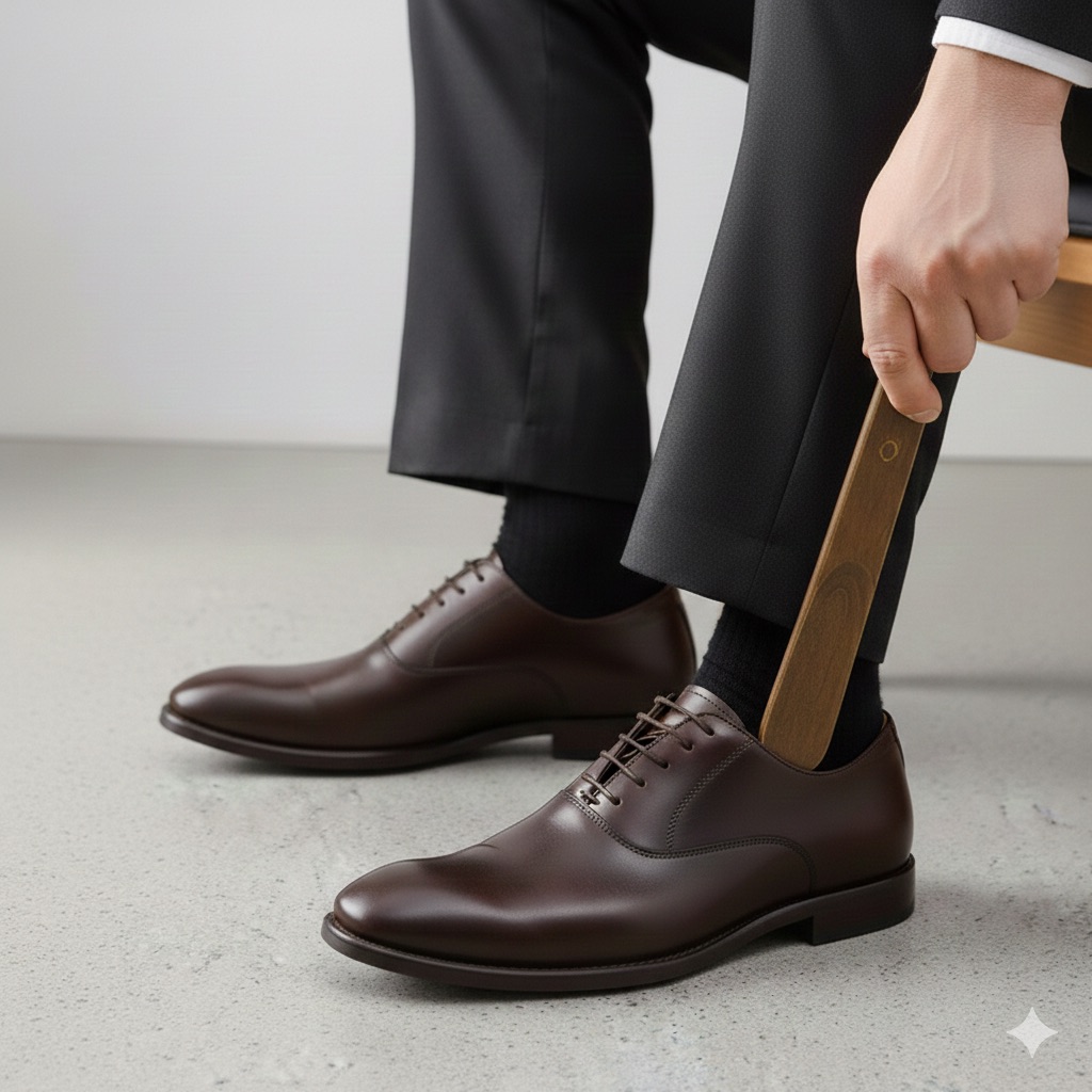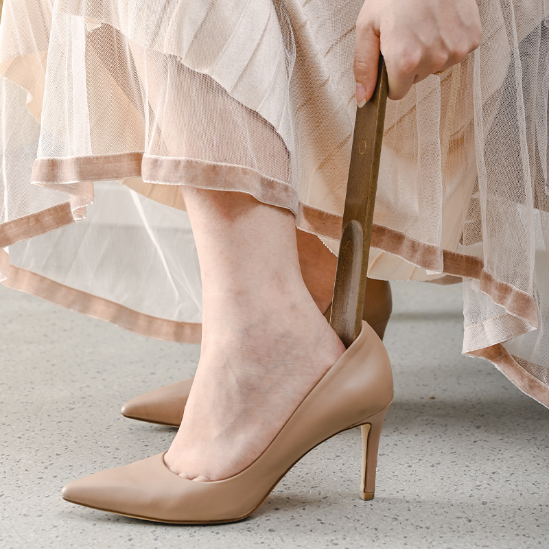 Gör på- och avtagning av skorna enkel och bekväm med ett stilrent skohorn i trä.