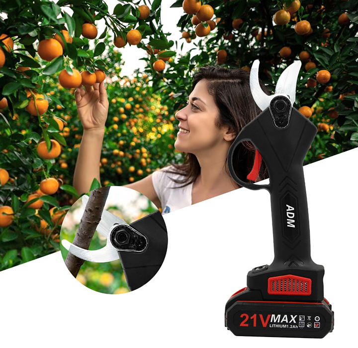 Upptäck enkelheten i trädgårdsskötsel med sladdlös elektrisk Sekatör, nu inklusive 2 kraftfulla 21V-batterier.