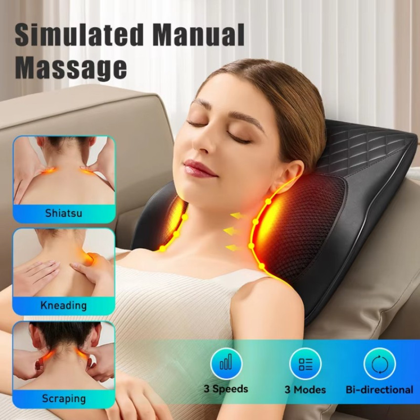 Med fyra kraftfulla massagekulor och värmefunktion som efterliknar händerna hos en riktig massageterapeut, stimulerar den blodcirkulationen, lindrar muskelspänningar och ger en djupgående avslappning för hela kroppen.