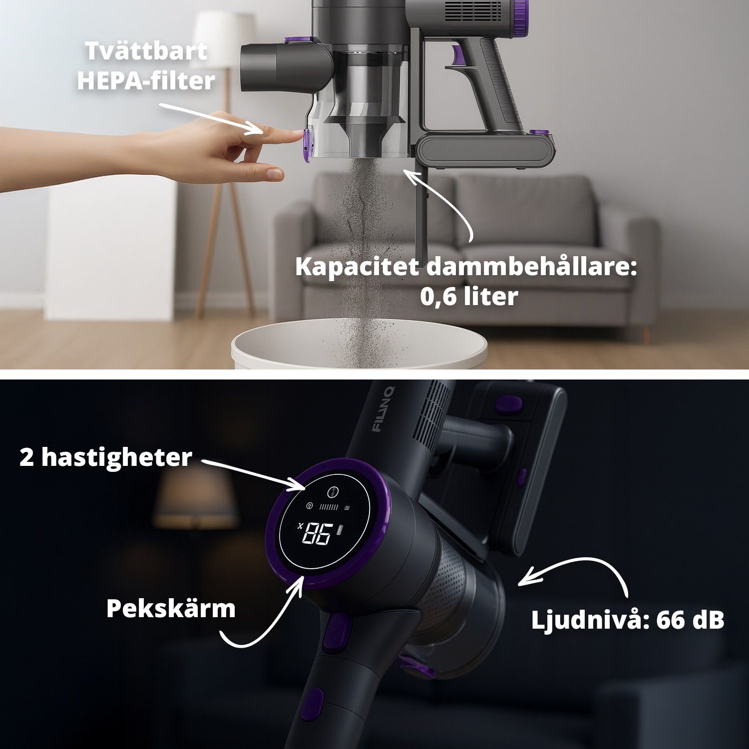 Oavsett om det gäller smulor i köket, damm på golven eller en snabb uppfräschning mellan storstädningarna är V8 byggd för att leverera effektiv rengöring utan krångel. Betydligt starkare än många modeller i samma prisklass.