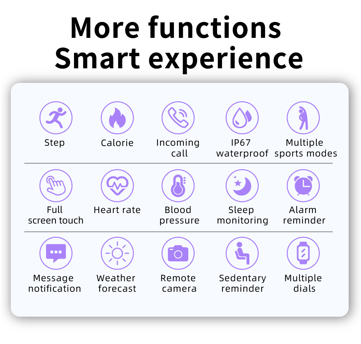 Med över 100 sportlägen, avancerad hälsospårning och snabb magnetisk laddning får du en klocka som hänger med i varje steg, från intensiva träningspass till vardagliga rutiner. Den tydliga 1.28” LCD-touchskärmen gör det enkelt att navigera, medan IP67-vattentätheten ger trygghet oavsett väder.