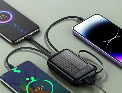 1 × Solcellsdriven powerbank (med 4 integrerade laddkablar)
