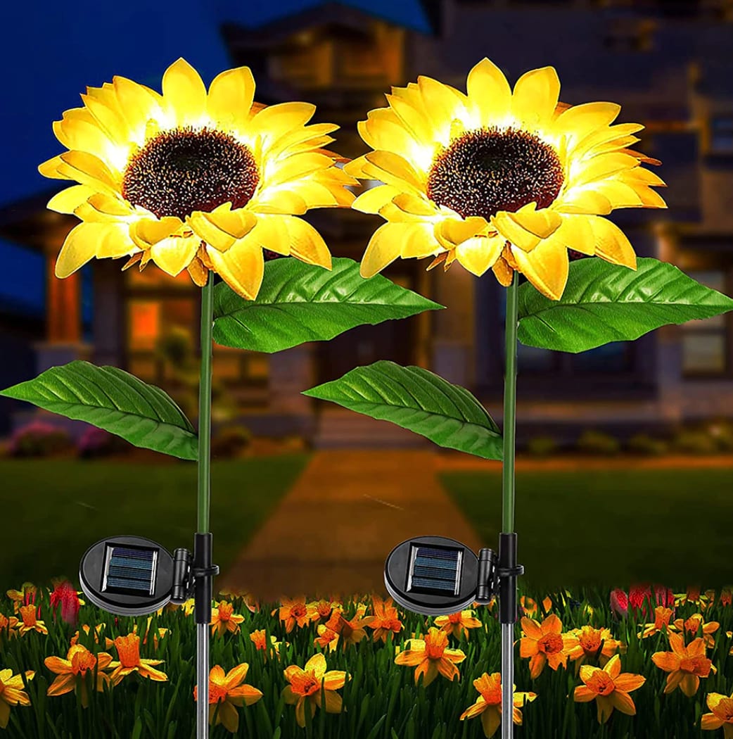 - 2-pack solcellslampor i form av solrosor