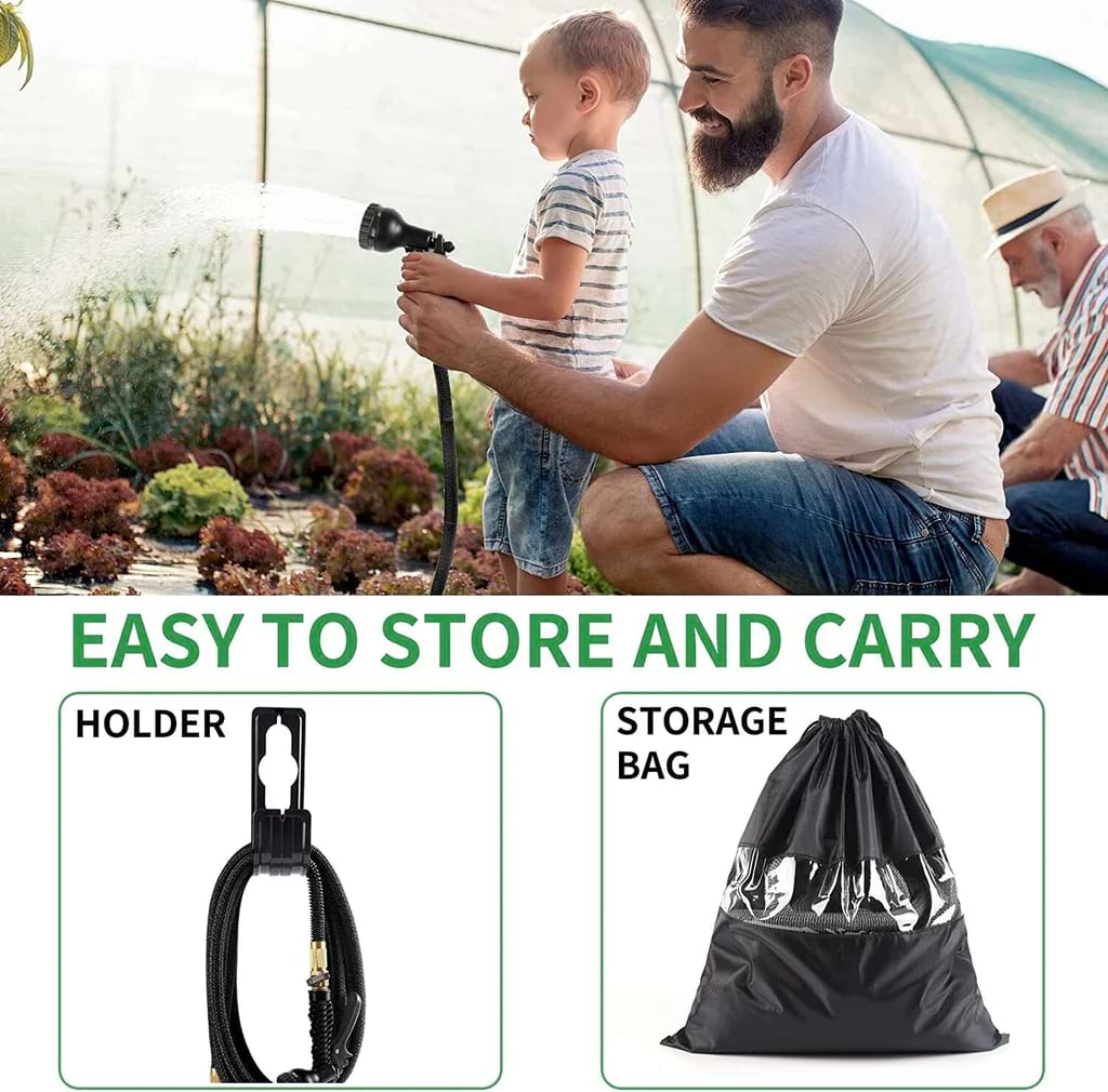 Denna flexibla och expanderbara trädgårdsslang kommer inte att knäckas, vridas, går sönder eller trasslar ihop sig under användning!
