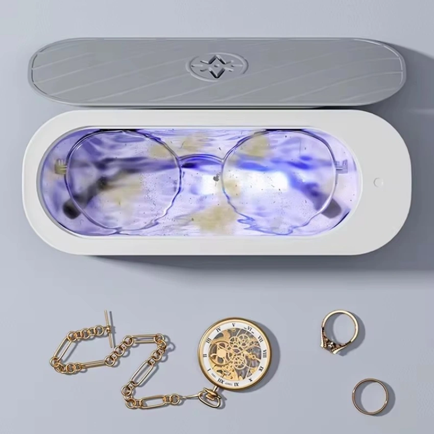 Maskinen passar för smycken, glasögon, proteser, mynt, sminkborstar, bestick och andra vardagsföremål. Placera föremålet i behållaren, tillsätt lite vatten och tryck på knappen, så sköts rengöringen automatiskt på några minuter.