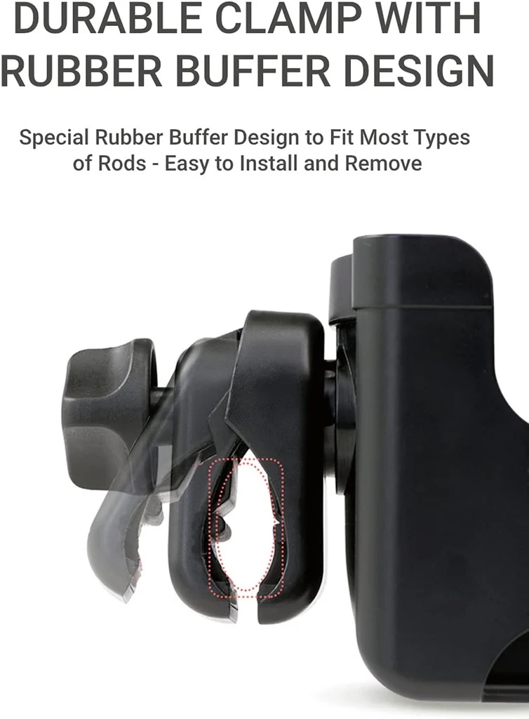 Justerbar storlek: klippets bredd kan fritt justeras från 0,55 tum till 1,96 tum. Så mugghållaren kan installeras på stänger i olika storlekar från 1,4 cm - 5 cm / 0,55 - 1,96 tum i diameter.