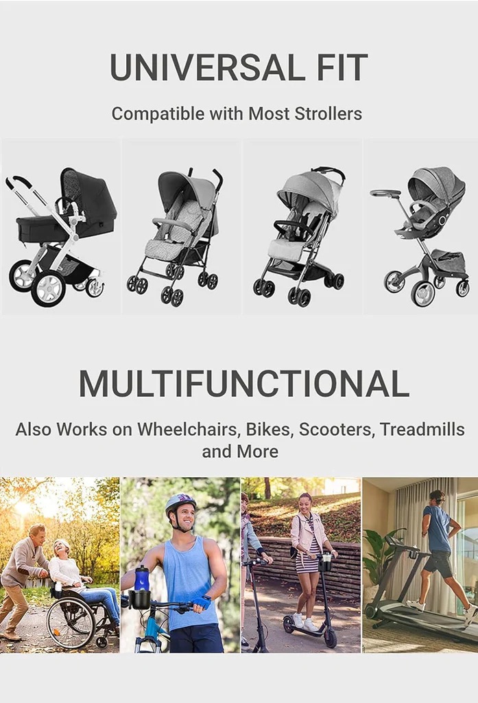 Med dagens deal får du en universal dryckes- och mobilhållare som du enkelt fäster på din resväska, cykel, vagn, motionsband, scooter etc. Har du någonsin önskat att du kunde ha både din dryck och din mobil inom räckhåll när du är ute och rör på dig? Nu är det möjligt med vår revolutionerande universala dryckshållare och mobilhållare! Denna smarta innovation kombinerar två av dina viktigaste tillbehör till ett, vilket gör ditt liv enklare och bekvämare.