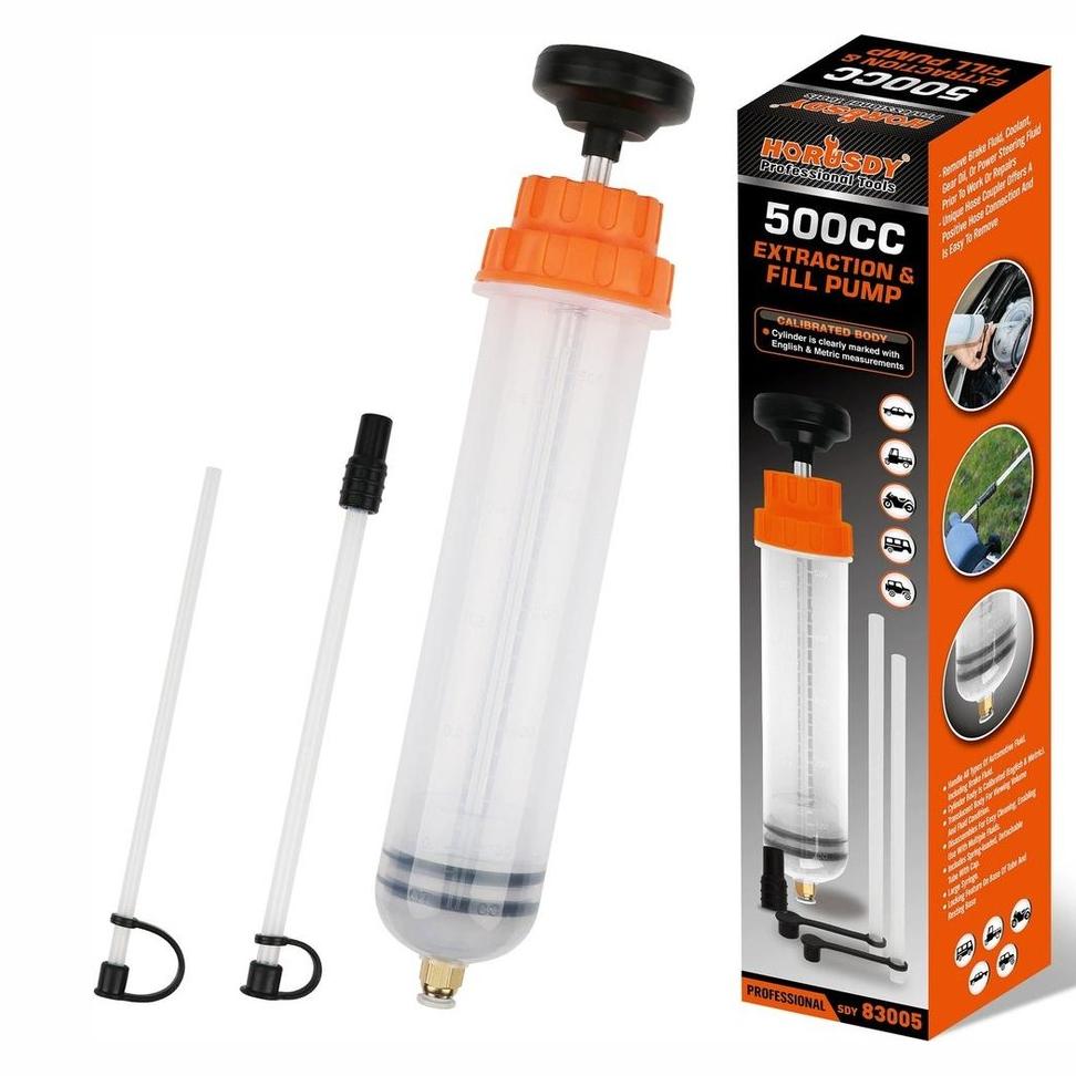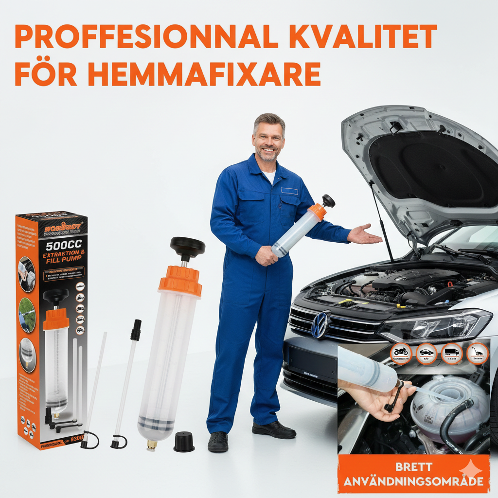 Med en kapacitet på 500 ml och en smart sprutdesign får du full kontroll över varje droppe. Perfekt för både avtappning och påfyllning.